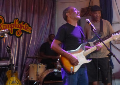 On July 1, 2023, I was lucky enough to obtain the support of the Lamplighter Lounge on Madison, and I established a weekly Saturday Blues Brunch in midtown. The show ran every Saturday from 1-3 pm—live, in person, and also on instacast at 1 and 3. I am forever grateful to the Lamp for this experience, and to the world-class musicians who were my initial performers. Our unofficial “house band” wound up consisting of Chris Hart on (mega) drums, and Ethan Baker on violin.
